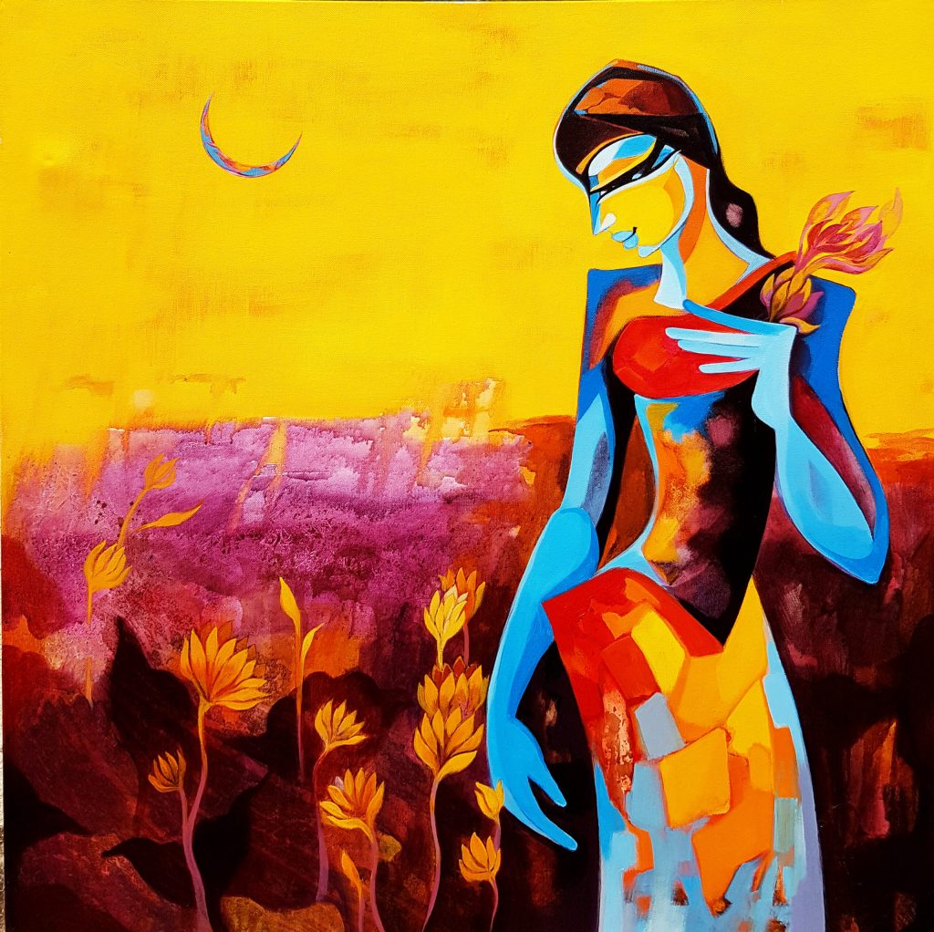 Laxmi Mysore in her art exhibition, has elegantly depicted the celebration of life in today’s stressful time. Using the stylized women figure, innocently put colour blocking with a strong emphasis on capturing emotions, she brings a neo-romance to her art narration.