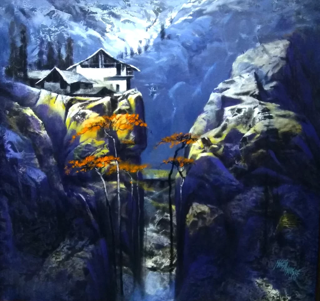 Nagesh Maruti’s paintings were inspired by the scenic beauty of Manali.