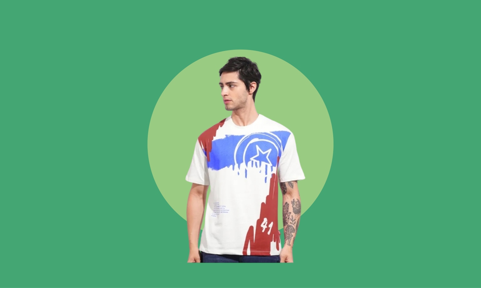 Graphics are the dominant design driver. The direction channels optimistic escapism, translating leisure-led fantasy into expressive, high-impact T-shirt surfaces. Coastal Reverie drifts through oceanic iconography, tropical botanicals, and sun-faded pastels that echo salt-washed summers and slow coastal rhythms. Guardians of Nature grounds the story with emotive slogans and symbolic imagery advocating love, care, and protection of the natural world. Wild Escapism introduces a sense of adventure through mountaineering-inspired graphics that celebrate exploration and untamed landscapes. Completing the narrative, Comic Love injects playful energy via oversized typography, comic-style illustrations, and layered digital effects, creating bold, collectible statements rooted in pop optimism and youthful expression. Front-placement prints are most prevalent, with occasional back full graphics used for added impact. Engineered placements and digital layering techniques transform everyday basics into statement pieces. Branding ranges from minimal wordmarks and tonal embossing to bold, oversized text and slashed lettering. Pop and comic-inspired motifs—superhero insignias, marvel character illustrations, and action graphics—introduce a youthful, fan-driven energy. Abstract and painterly treatments appear through brushstroke effects, splatter graphics, and blurred photographic prints, lending a softer, artistic counterpoint. All-over prints emerge in select styles, including tropical palms, marine-inspired imagery, checkerboard repeats, and abstract geometrics. Surface interest is further enhanced through tonal rib textures, subtle jacquard-like knits, and engineered panel graphics, while finishes remain largely matte to support daily wear.